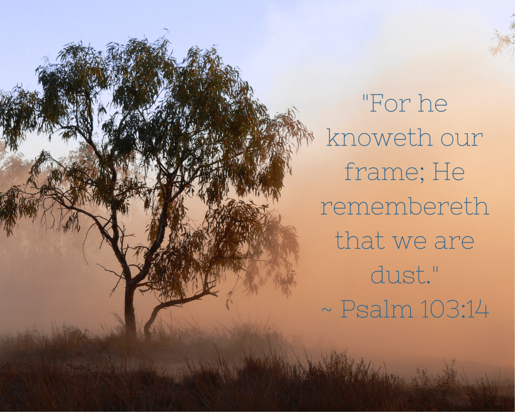 Why does he do all these things? Because, as it says in the very next verse, “For he knoweth our frame; he remembereth that we are dust.”