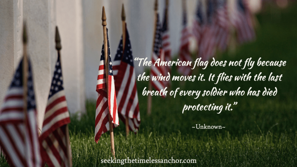 I’ve already said that my family and I always go to our local ceremony in honor of our fallen. But it has also become a tradition for my sisters and I that we go and walk a special walkway in our area that is lined with large flags. There is one flag for each of our local soldiers who have been killed serving our nation.