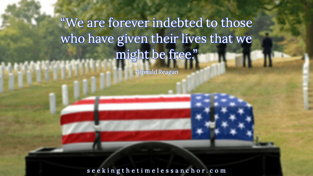 I know that I call this a Countdown, and that term is used in a wide variety of ways, but there is a purpose to this Countdown. I want you to be reminded that Memorial Day is rapidly approaching, but it isn’t just another excuse for a three-day weekend and a barbecue. This is a day of solemn remembrance. It’s a day when your heart should be humbled by gratitude to those who have died for you and their families who have given them for freedom.