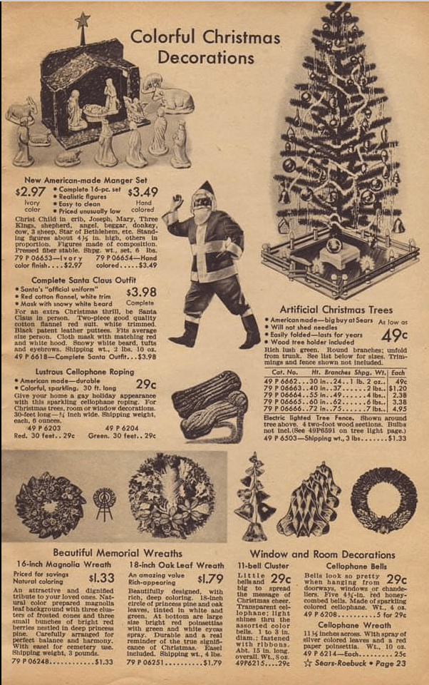 The exception would’ve been those living in rural areas where they could cut down their own tree. But even then, so many husbands and fathers were overseas that many rural Americans opted for artificial trees as well.